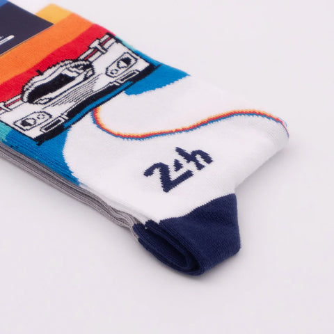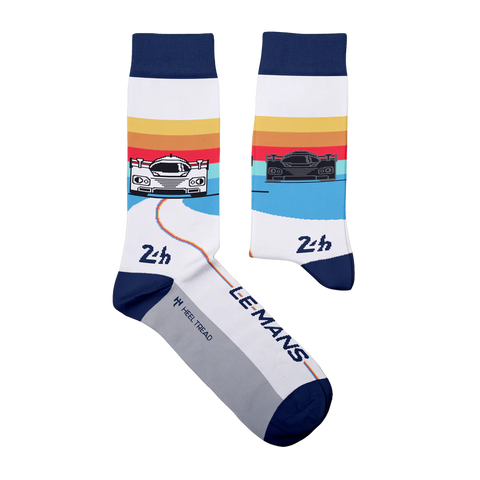 Developed in close collaboration with the 24 Hours of Le Mans, this is a tribute to the La Sarthe circuit. The Retro Racer socks pay tribute to the golden age of Group C.
