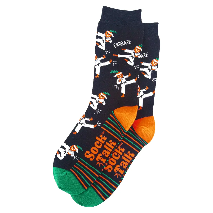 These quirky "carrate" socks are designed to really pack a punch. Crafted from breathable combed cotton and featuring an amusing design of cartoon carrots practicing karate, these funny socks are a wonderful gift idea.